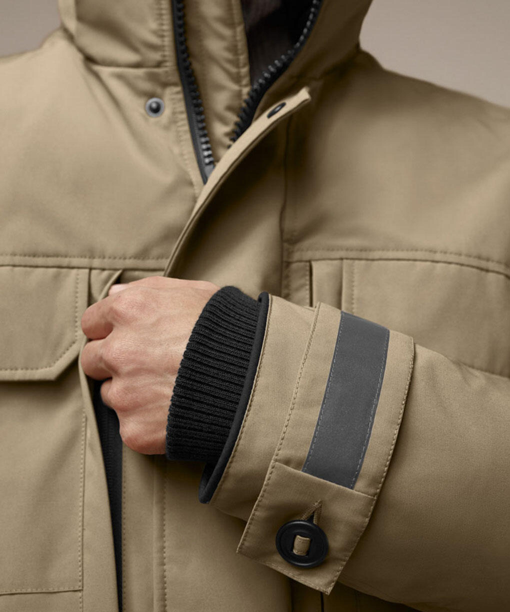 耐久性が必要な部分にコーデュラナイロンを使用するなど、長く着ることができる丈夫なダウンジャケット。デザインもスーツにも合わせやすく、仕事でもプライベートでも着用可能。リフレクターも付いており、安全性にも配慮したカナダグースのダウンジャケットです。