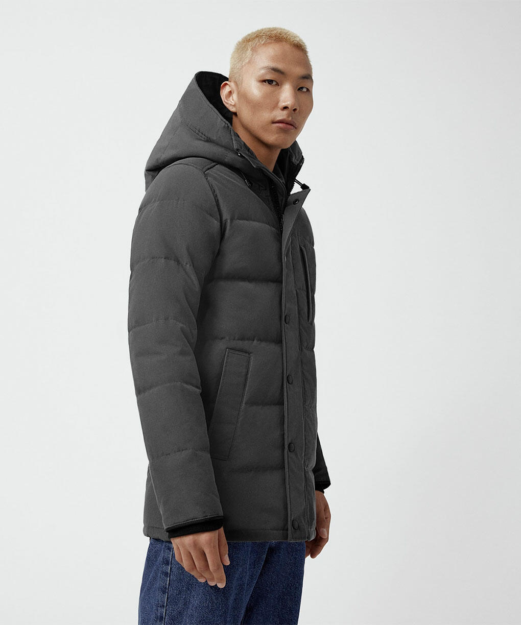 ファーがないフード、シンプルなキルトデザイン、シャツのように前身頃と後身頃で長さが違うというデザインが特徴的なマクミランパーカー。機能面では、顔周りを覆ってくれるフード、2WAYジッパー採用による通気性の向上と他のモデルに劣らず快適設計。