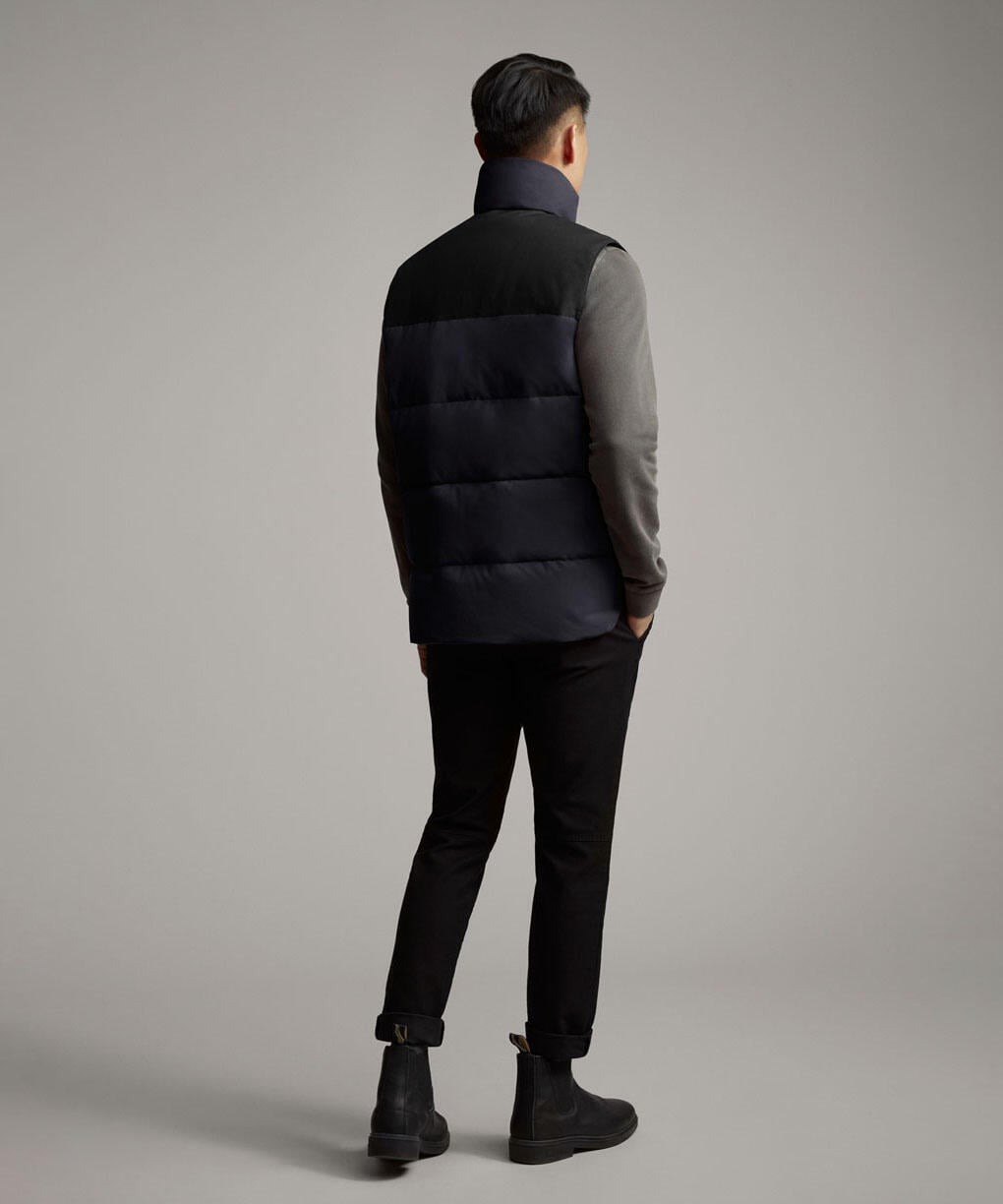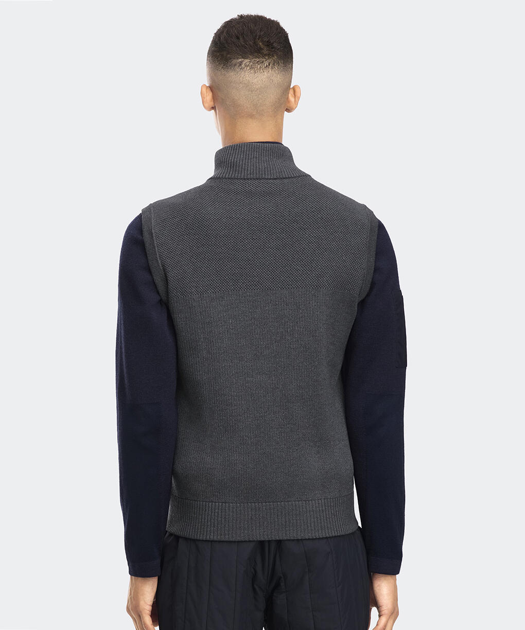 カナダグースのダウンベストは気になるけど、他の人とかぶるのが嫌という人におすすめなのが、こちらのダウンベストです。フロントのポケットが目立たないシンプルなデザインとニット素材のおかげで、インナーとしても使えます。ニットのドレス感とダウンの機能性を兼ね備えた便利な一着。