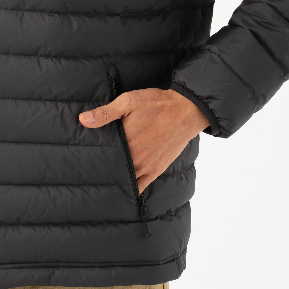 インナーに着たときにスマートな仕上がりになるように程よいフィット感のあるシルエットにデザインされています。ベーシックなデザインなので、アウトドアシーンはもちろんのことタウンユースも可能です。腰部分のゴムを締めれば防寒性もアップ。nn艶消しの上品な質感でアウターとして着用してもスマートな着こなしが叶います。腰のポケットにはファスナーがついていますので、近所の買い物はバッグいらずでOKですね。