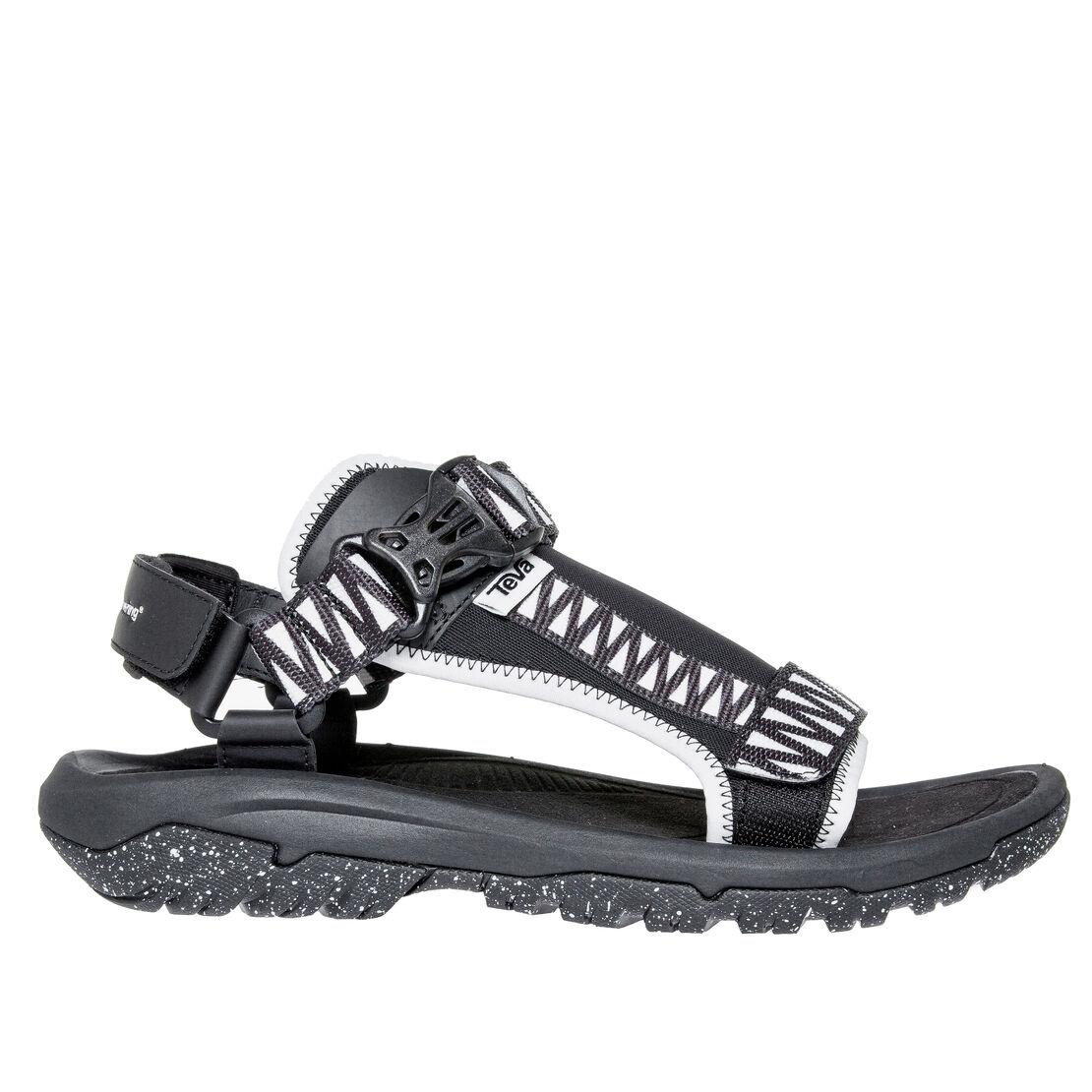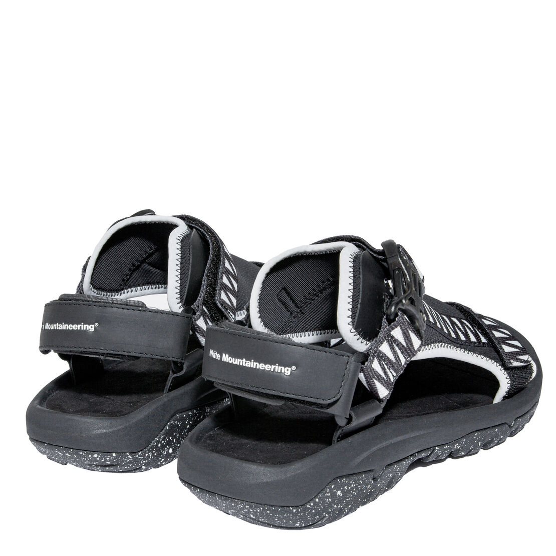 アウトドアのファッションブランドで有名なホワイトマウンテニアリングとコラボしたスポーツサンダルです。テバの定番モデル・ハリケーンボルトをベースに、スタイリッシュにデザインされました。ブランドのイニシャルロゴWMをアレンジしたデザインが特徴的で、白と黒のコントラストもよく映えています。nn反発性の高いインソールとフッドベッドが足の衝撃を緩和してくれます。アッパーにはメッシュテキスタイルとポリエステルを採用しているので、通気性が抜群です。足首にあるバックルで簡単に着脱できる、実用性も兼ね揃えたスポーツサンダルになっています。