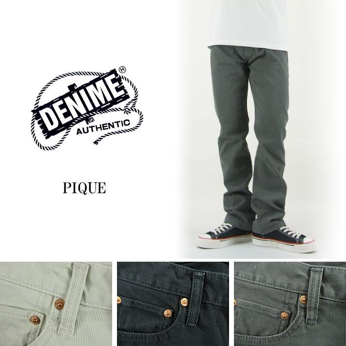 ドゥニームの人気No.1商品の66タイプをモチーフにしており、スリムストレートなシルエットが男らしさを演出。60年代中期にアメリカ東海岸で流行ったピケ素材を使用し、柔らかい風合いを感じさせます。ダークグレー、オフホワイト、ブラックとカラー展開があり、大人カジュアルな着こなしを作り出してくれます。
