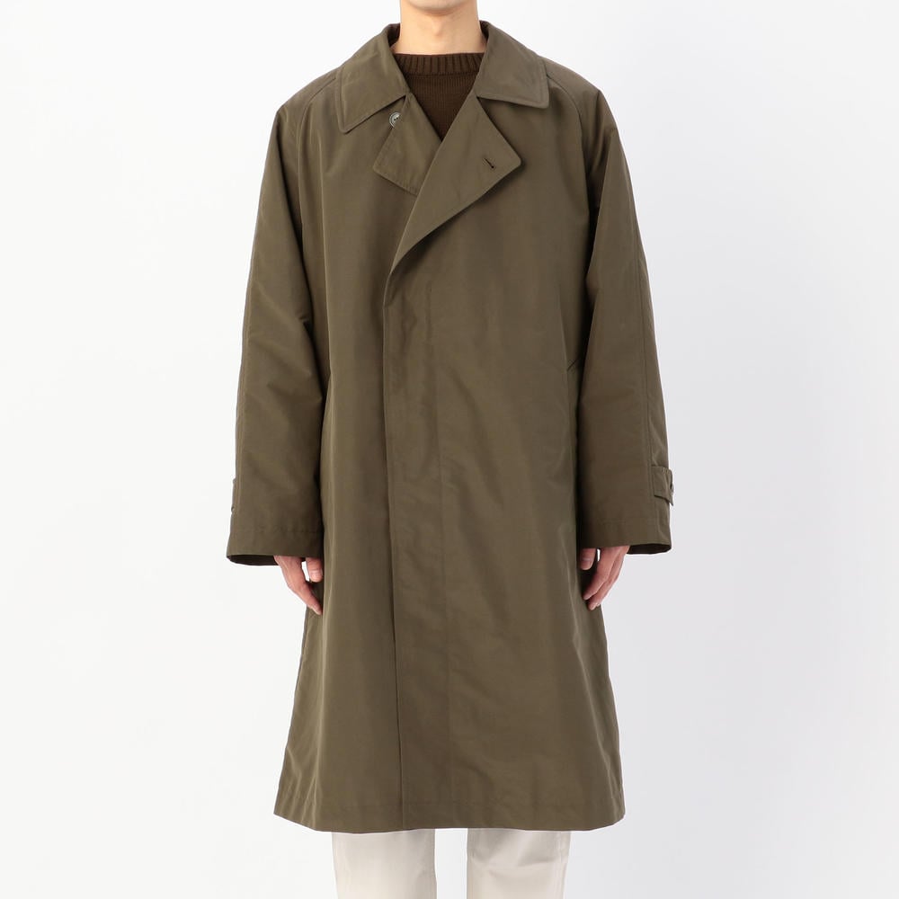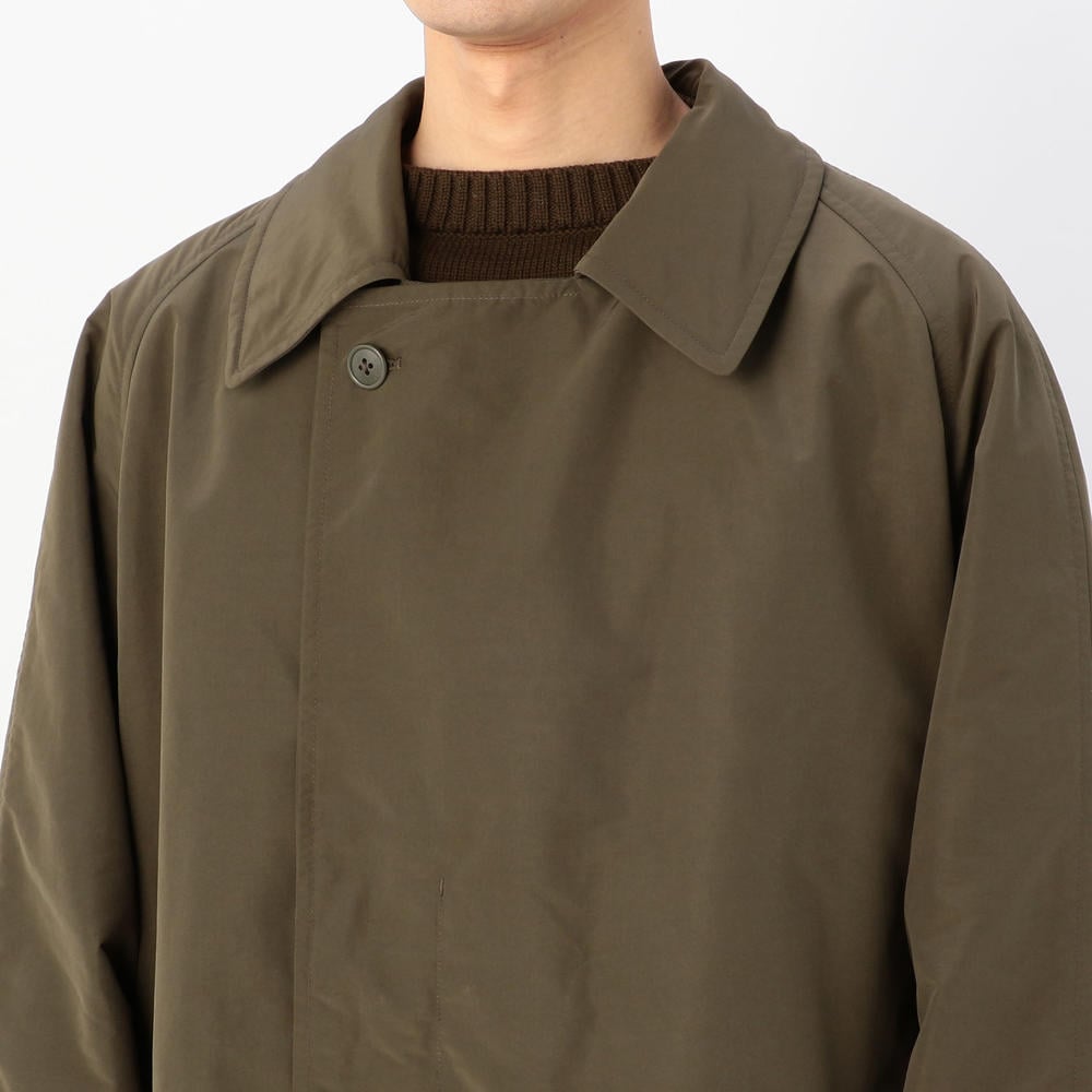 カジュアルにもきれい目にも合わせやすいチェスターコート。前合わせの部分がダブルコートのように深く、ボタンレスにすることでゆったりオーバーサイズで着こなすことができます。ボタンは無いですが、腰部分のベルトを結ぶことで雰囲気を変えることができます。nnハリのあるマットなナイロン生地は、裏地のない一枚仕立て。軽やかなのにペラペラすぎない、絶妙なこだわりを感じるコートです。nn※Bshopはアウトレット商品につき返品交換対象外となります。