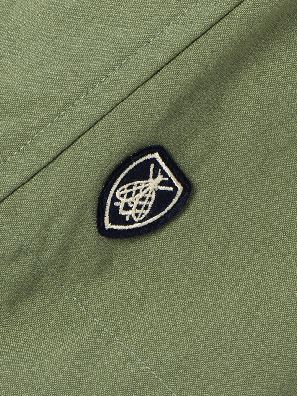 きれいめスタイルにナイロン素材は一見カジュアルすぎに思われますが、マットな質感で悪目立ちしません。春らしくナチュラルなグリーンとポイントのスカーフで爽やかな着こなしに。袖のゆるっとしたサイズ感も今っぽくておしゃれです。