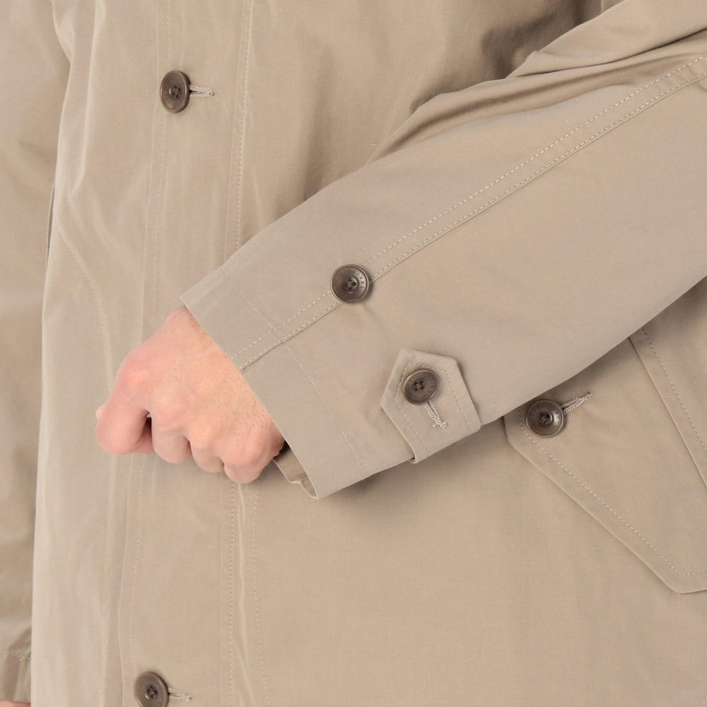 素材はナイロン100%なのに、ナチュラルな色味が今っぽいメンズコートです。ツヤのないマットな質感で、ナイロン素材特有の軽やかさとは裏腹に高級感のある一枚に。裾広がりのデザインで、ゆるっとしたシルエットの着こなしができます。nn薄手で軽やかなコートは、手軽にサッと着られて、この春活躍してくれること間違いなしです。また、袖は余裕がある太めのデザインなので、寒い時期にたくさん着てもごわつきません。冬から春まで長く着られるのも魅力です。