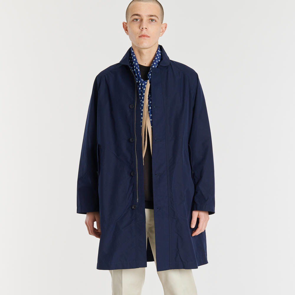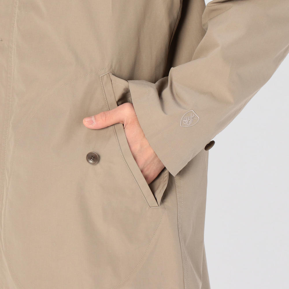 シンプルでミニマルなデザインのステンカラーコートは、どのようなコーデにも取り入れやすいアイテムです。軽くて撥水性のある合繊タフタ素材を使用しており、持ち運びも邪魔になりにくいです。アウトドアや急な悪天候への備えにもおすすめのコートです。nn背中は蒸れを防ぐベンチレーションデザインで、前部分は比翼仕様で軽やかに。トレンドのドロップショルダーで、機能性もおしゃれさも取り入れられている、春にぴったりのアウターです。