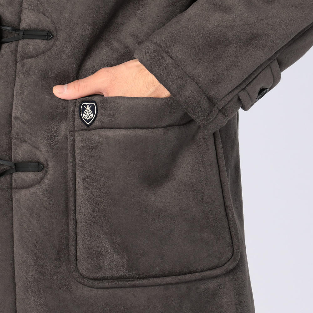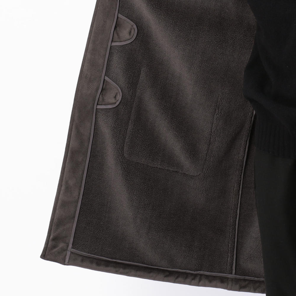 レトロでクラシカルなダッフルコートを、フェイクムートン素材で仕立てて目新しさをプラスしています。ポリエステルで作られたフェイクムートンですが、毛並みや質感の再現度が高いです。マットな触り心地も高級感があります。nnまた、トグル部分は高品質な牛革を使用しています。ぴったり過ぎず着ぶくれしないシルエットを追求し、こだわり抜いたダッフルコートです。nn※アウトレット商品につき返品交換対象外となります。n