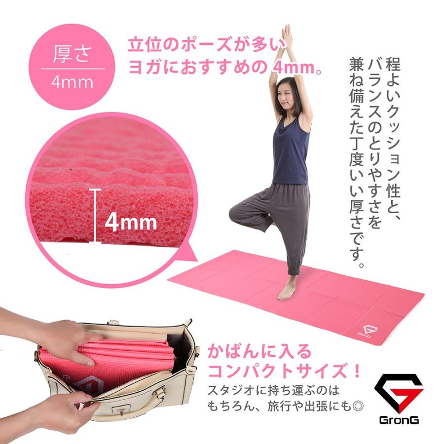 まず、通常のヨガマットに比べて比較的クッション性が低いことが挙げられます。中にはしっかり厚みがあるタイプもありますが、たたみやすさを考慮して薄めに作られている商品も存在します。