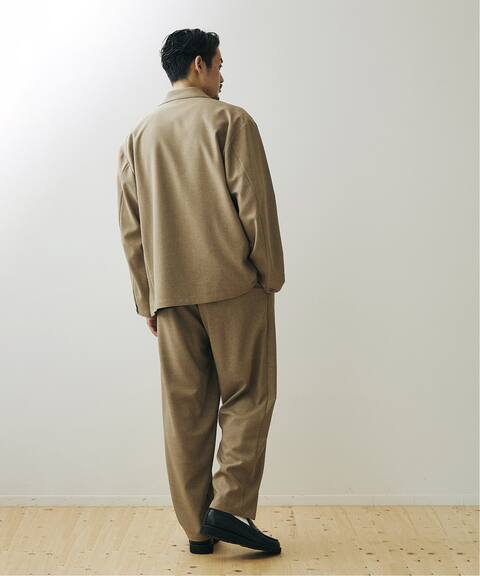JOURNAL STANDARDのパンツとジャケットがセットのもので、セットアップとしてもジャケットだけなどでも着られます。オーバーサイズのジャケットで、身幅が広くドロップショルダーなのが特徴です。サマースーツによく使用されるトロピカル素材(夏用素材)が使われているので、薄手でさらっとしたドライな着心地になります。nnTシャツなどのカジュアルファッションや、柄シャツを合わせた個性派、バンドカラーシャツやシンプルなシャツできれいめのファッションなど多様な着こなしが叶います。ベージュジャケットとパンツのセットアップコーデを楽しみたいという方におすすめです。