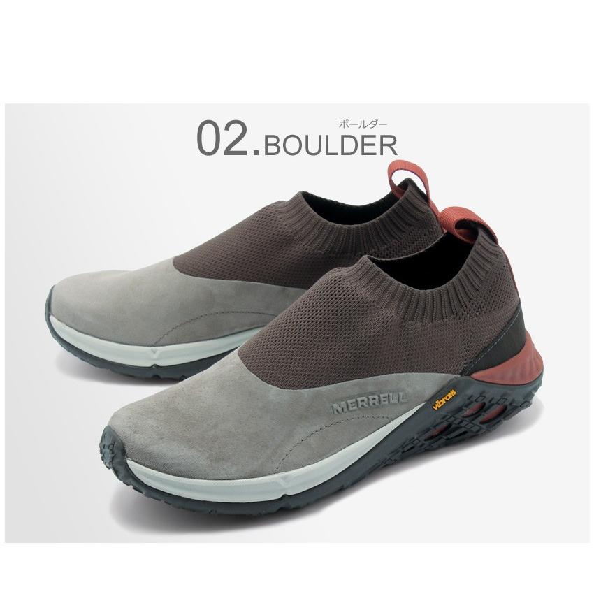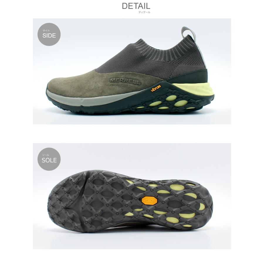 メレルの代名詞である、ジャングルモックをシャープなフォルムに進化させた一足です。底材をVibramソールに変更しており、定番のジャングルモックからより耐久性とグリップ力が優れたモデルとなりました。アッパーは細身でスタイリッシュになっているので、スマートな着こなしに合わせたいときにもおすすめしたい一足です。nnまた、アッパーのサイドに入ったスリットが、通常のジャングルモックよりも深めに入っていることも特徴です。これによりシューズの履きやすさが向上するだけでなく、フィット感も上がってより足になじむようになっています。