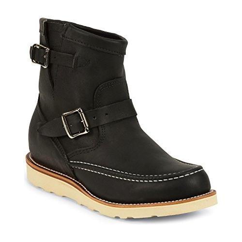 創業当初から手作業にこだわって、ブーツが好きな人なら不思議と行きつくブランドとして定評があるのがCHIPPEWAです。なかでもカジュアルなおしゃれが楽しめるのがこのモックトゥデザインのエンジニアブーツです。nnつま先をU字型に縫い合わせたステッチのモックトゥデザインが、カジュアルなファッションにもマッチします。クッション性にも優れたソールを使用しているので長時間履いても疲れにくい構造になっています。また、ブラックのオイルドレザーを使用しているので、履けば履くほどに経年による変化を楽しめる愛着の湧くアイテムです。nn